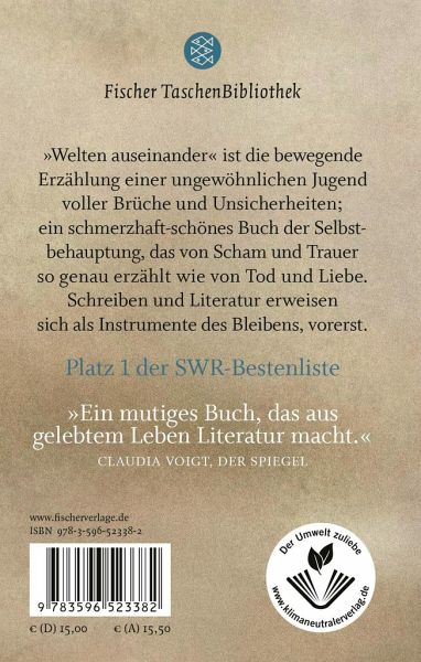 »Welten auseinander« ist Julia Francks bewegende Erzählung einer ungewöhnlichen Jugend voller Brüche und Unsicherheiten; ein schmerzhaft-schönes Buch der Selbstbehauptung, das von Scham und Trauer so genau erzählt wie von Tod und Liebe. Schreiben und Literatur erweisen sich als Instrumente des Bleibens, vorerst.
