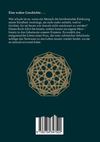 Eine wahre Geschichte ...Wie schade ist es, wenn ein Mensch die berührendste Erfahrung seiner Kindheit verdrängt, sie nicht mehr mitteilt, weil er fürchtet, für sie heute wie damals nicht anerkannt zu werden? Dieses Buch führt Sie hinein, mitten hinein ins eigene Herz - hinein in das Geheimnis unserer Existenz. Es erzählt das ereignisreiche Leben einer Frau, die trotz zahlreicher Schicksalsschläge das Vertrauen in das Leben immer wieder findet, wo sie es niemals erwartet hätte.