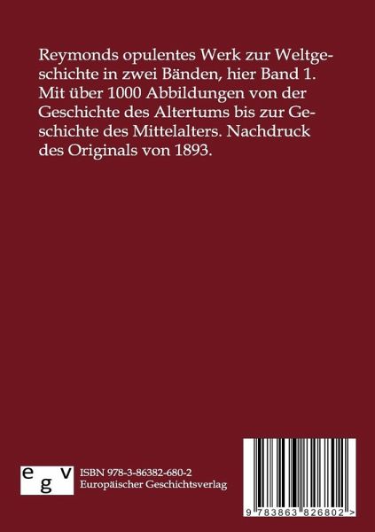 Reymonds opulentes Werk zur Weltgeschichte in zwei Bänden, hier Band 1. Mit über 1000 Abbildungen von der Geschichte des Altertums bis zur Geschichte des Mittelalters. Nachdruck des Originals von 1893.