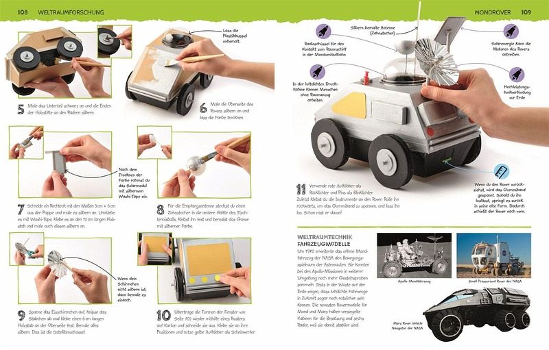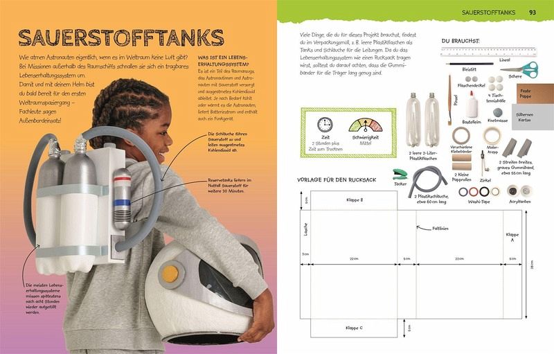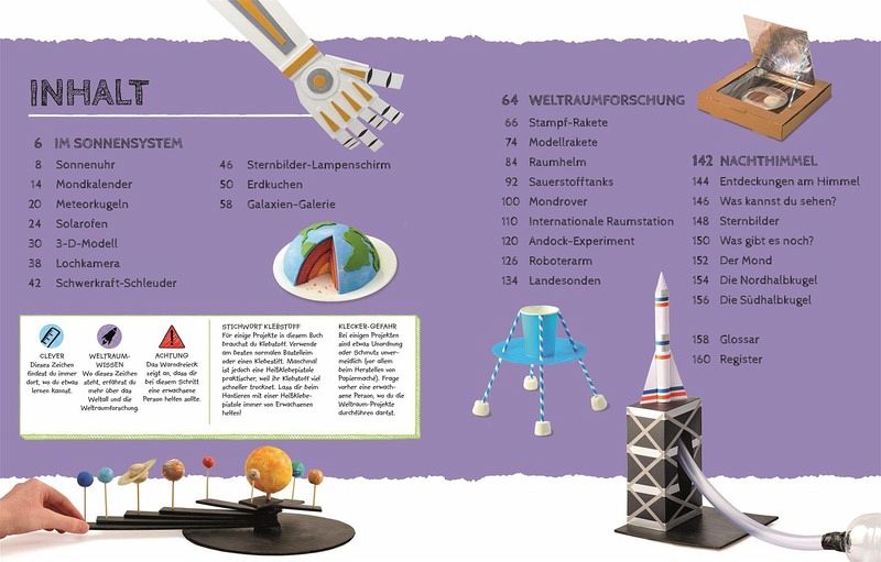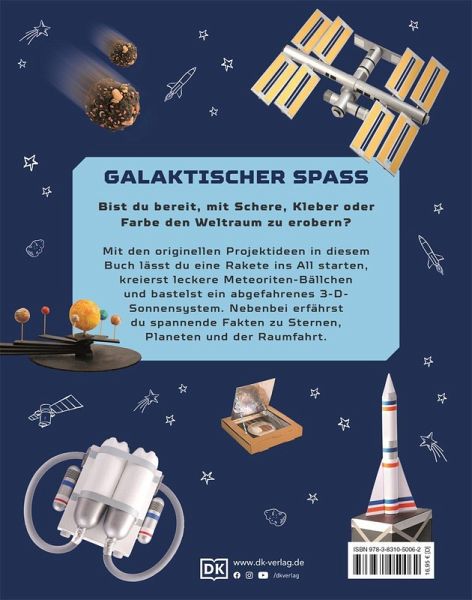 Ob Astronautenhelm, 3D-Sonnensystem, Meteoriten-Snacks oder die ISS im Modell: Mit diesen 26 originellen Bastel- und DIY-Projekten kommt garantiert keine Langeweile auf! Schritt für Schritt und mit vielen Fotos erklärt, schulen die Projekte in verschiedenen Schwierigkeitsstufen nicht nur Geduld und Konzentration, sondern vermitteln gleichzeitig spannendes (MINT-)Wissen rund um die Themen Raumfahrt, Weltall und Technik. Benötigt werden dazu überwiegend haushaltsübliche Materialien, sodass sich die Projekte auch ideal für Kindergeburtstage und Schulprojekte eignen.Hier kommt echtes Weltraum-Feeling auf!