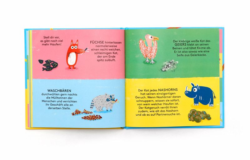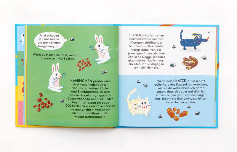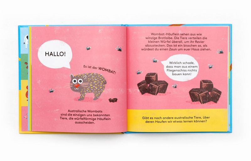 -Das Buch zu unserem Bestseller-Memo Wem gehört der Haufen-Fröhliches Bilderbuch mit allem, was man über die Haufen von Tieren wissen muss-Neben dem zeitlosen Spaß an dem Thema, lernen Kinder viele lustige und unverkrampfte Fakten über Ernährung und VerdauungWombats machen Würfel, Mäuse können bis zu 75 kleine Kotkügelchen pro Tag hinterlassen und die Köttel von Fledermäusen funkeln wie Glitzer! Und - kein Witz - junge Koalas fressen die Haufen ihrer Mutter. Mit diesem lustigen, informativen und niemals vulgären Buch werden Ihre Kinder lachen und staunen und dabei einiges über die 27 vorgestellten Tiere lernen - insbesondere über ihre Ernährung, Verdauung und ihre Ausscheidungen!