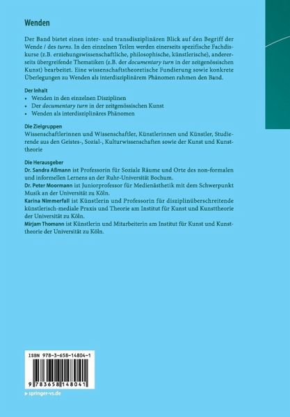 Der Band bietet einen inter- und transdisziplinären Blick auf den Begriff der Wende / des turns. In den einzelnen Teilen werden einerseits spezifische Fachdiskurse (z.B. erziehungswissenschaftliche, philosophische, künstlerische), andererseits übergreifende Thematiken (z.B. der documentary turn in der zeitgenössischen Kunst) bearbeitet. Eine wissenschaftstheoretische Fundierung sowie konkrete Überlegungen zu Wenden als interdisziplinärem Phänomen rahmen den Band.