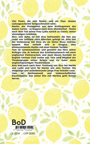 Vier Paare, die sich finden, und ein Paar, dessen Liebesgeschichte fortgeschrieben wird.Martin, der Protagonist aus dem Erstlingswerk des Autors Carola - es begann nach dem Oktoberfest - findet nach dem Tod seiner Frau Lydia zurück zu Carola, seiner ehemaligen Geliebten.Rico, sein Sohn, ist mit Aiva befreundet, die ihm aus Liebe von Lettland nach München gefolgt ist. Aiva löst die Verbindung mit Rico, als sie hinter Ricos Untreue kommt. Rico verliebt sich in Dragica, eine alleinerziehende Mutter mit einer kleinen Tochter. Tom ist Gymnasiallehrer und gewinnt das Herz seiner Kollegin Lisa. Er betreut den Schüleraustausch mit einer englischen Partnerschule und baut diesen Kontakt im English-German Club weiter aus. Tom wird Mitglied der Theatergruppe seiner Schule und Co-Autor eines englischsprachigen Theaterstücks.Aiva lebt auch nach ihrer Trennung von Rico bei Martin und Lydia und wird für Martin wie eine Tochter. Die ehrgeizige und selbstbewusste junge Frau heiratet Leon.Uwe ist Rechtsanwalt und leidenschaftlicher Klavierspieler. Aus seiner Ehe mit Martina geht Svenja hervor.