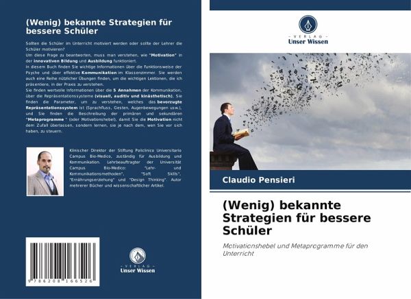 Sollten die Schüler im Unterricht motiviert werden oder sollte der Lehrer die Schüler motivieren?Um diese Frage zu beantworten, muss man verstehen, wie "Motivation" in der innovativen Bildung und Ausbildung funktioniert.In diesem Buch finden Sie wichtige Informationen über die Funktionsweise der Psyche und über effektive Kommunikation im Klassenzimmer. Sie werden auch eine Reihe nützlicher Übungen finden, um die wichtigen Lektionen, die ich präsentiere, in der Praxis zu verstehen.Sie finden wertvolle Informationen über die 5 Annahmen der Kommunikation, über die Repräsentationssysteme (visuell, auditiv und kinästhetisch), Sie finden die Parameter, um zu verstehen, welches das bevorzugte Repräsentationssystem ist (Sprachfluss, Gesten, Augenbewegungen usw.), und Sie finden die Beschreibung der primären und sekundären "Metaprogramme " (oder Motivationshebel), damit Sie die Motivation nicht dem Zufall überlassen, sondern lernen, sie je nach dem, wen Sie vor sich haben, zu steuern.