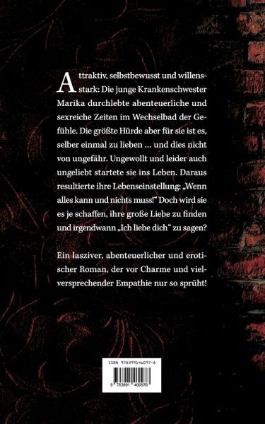 Attraktiv, selbstbewusst und willensstark: Die junge Krankenschwester Marika durchlebte abenteuerliche und sexreiche Zeiten im Wechselbad der Gefühle. Die größte Hürde aber für sie ist es, selber einmal zu lieben ... und dies nicht von ungefähr. Ungewollt und leider auch ungeliebt startete sie ins Leben. Daraus resultierte ihre Lebenseinstellung: "Wenn alles kann und nichts muss!" Doch wird sie es je schaffen, ihre große Liebe zu finden und irgendwann "Ich liebe dich" zu sagen?Ein lasziver, abenteuerlicher und erotischer Roman, der vor Charme und vielversprechender Empathie nur so sprüht!