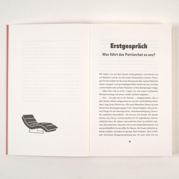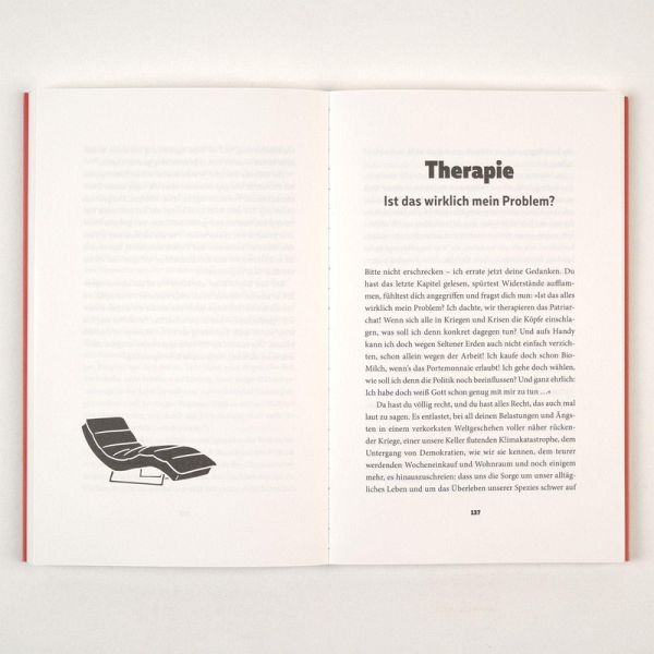 »Geistreich, mit viel Ironie und Witz, aber zugleich alarmierend ernsthaft analysiert die Autorin Alpha-Männer und unsere Hustle-Culture, spricht über generationale Traumata und wie diese selbst in Therapieräumen reproduziert werden können, die häufig von rassistischen Strukturen geprägt sind.« Chiara Kohlmorgen, an-schläge, Heft 4/25 »Hier wird das geschundene Patriarchat nicht AUF, sondern IN den Arm genommen. Manchmal auch etwas fester. SEHR FEST. Aber immer mit feinem Humor, unendlicher Geduld und der Aussicht auf echte Traumabewältigung. Es wurde aber auch Zeit!« Florian Hacke, Satiriker »Hartnäckige Probleme lassen sich nur mit unkonventionellen Ansätzen lösen. Genau das macht Katharina Linnepe, und Leser:innen gewinnen dabei unerwartete Aha-Erlebnisse - und haben auch noch Spaß.« Patricia Cammarata, Psychologin und Bestsellerautorin »Bei Katharina Linnepe würde selbst ich mich, als Feministin, auf die Couch legen und über eigene patriarchale Strukturen und Handlungsweisen reden wollen. Es gelingt ihr nämlich mit Witz, Charme und intelligenten Analysen zu konfrontieren, ohne dass man sich angegriffen fühlt.« Jasmina Kuhnke, Autorin und Filmschaffende