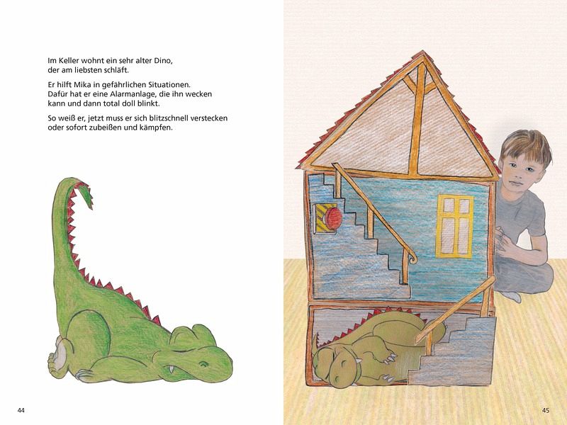 Wenn in Mikas Kopf der Dino brüllt, tut er Dinge, die er eigentlich gar nicht entschieden hat. So wie Mika geht es vielen Kindern, die schlimme Erlebnisse zu verarbeiten haben. Gemeinsam mit der Bilderbuch-Figur können sie die Ideen aus der Trickkiste ausprobieren, die wieder Ruhe im Gehirn, dem inneren Haus, einkehren lassen.