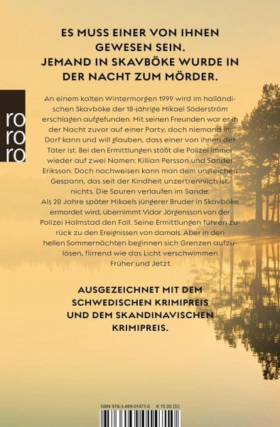 Als 20 Jahre später Mikaels jüngerer Bruder in Skavböke ermordet wird, übernimmt Vidar Jörgensson von der Polizei Halmstad den Fall. Seine Ermittlungen führen zurück zu den Ereignissen von damals. Aber in den hellen Sommernächten beginnen sich Grenzen aufzulösen, flirrend wie das Licht verschwimmen Früher und Jetzt.