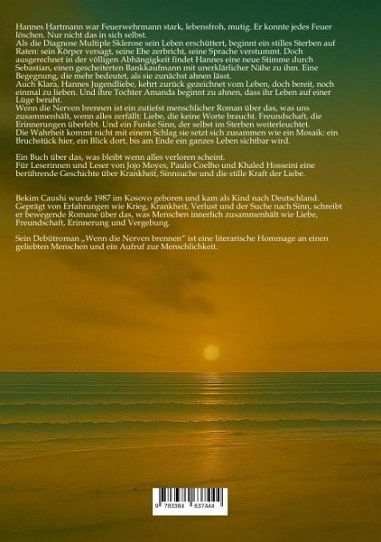 "Wenn die Nerven brennen" erzählt die Geschichte von Hannes, einem ehemaligen Feuerwehrmann, der an MS erkrankt und in einem Pflegeheim lebt. Durch die Begegnung mit dem sensiblen Alltagsbegleiter Sebastian entstehen zarte menschliche Bindungen, neue Erkenntnisse-und eine stille Freundschaft, die über Worte hinausgeht. Eine Liebe intensiver Momente aber ohne Zukunft. Sebastian ist seine Brücke zur Welt der Lebenden und sein Sprachrohr. Hannes sieht in Sebastian seinen neuen Freund, ohne die gemeinsame Vergangenheit zu kennen. Die Krankheit bringt auch Klara und Hannes in der Vergebung zusammen. Was im Glanz der Jugend zerbrach, wird im Pflegeheim neu berührt. Auch Amanda beginnt im Pflegeheim nach ihrem Vater zu suchen. Der Roman verwebt persönliche Schicksake mit gesellschaftlichen Fragen über Krankheit, Schuld, Familie und Lebenssinn. Am Ende bleibt nicht nur Trauer-sondern auch geistige Heilung.Zwischen moderner Medizin, alternativen Heilwegen und spiritueller Suche entfalten sich Wege, die über das Sichtbare hinausreichen- bis zur Gründung einer Stiftung.