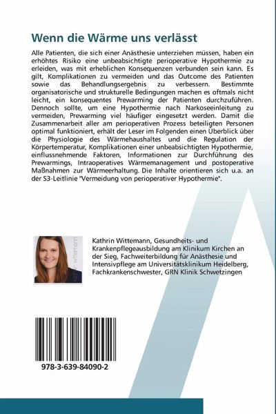 Alle Patienten, die sich einer Anästhesie unterziehen müssen, haben ein erhöhtes Risiko eine unbeabsichtigte perioperative Hypothermie zu erleiden, was mit erheblichen Konsequenzen verbunden sein kann. Es gilt, Komplikationen zu vermeiden und das Outcome des Patienten sowie das Behandlungsergebnis zu verbessern. Bestimmte organisatorische und strukturelle Bedingungen machen es oftmals nicht leicht, ein konsequentes Prewarming der Patienten durchzuführen. Dennoch sollte, um eine Hypothermie nach Narkoseeinleitung zu vermeiden, Prewarming viel häufiger eingesetzt werden. Damit die Zusammenarbeit aller am perioperativen Prozess beteiligten Personen optimal funktioniert, erhält der Leser im Folgenden einen Überblick über die Physiologie des Wärmehaushaltes und die Regulation der Körpertemperatur, Komplikationen einer unbeabsichtigten Hypothermie, einflussnehmende Faktoren, Informationen zur Durchführung des Prewarmings, Intraoperatives Wärmemanagement und postoperative Maßnahmen zur Wärmeerhaltung. Die Inhalte orientieren sich u.a. an der S3-Leitlinie "Vermeidung von perioperativer Hypothermie".