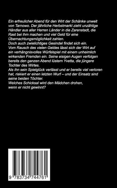 Ein erfreulicher Abend für den Wirt der Schänke unweit von Tarnowo. Der jährliche Herbstmarkt zieht unzählige Händler aus aller Herren Länder in die Zarenstadt, die Rast bei ihm machen und viel Geld für eine Übernachtungsmöglichkeit zahlen.Doch auch zwielichtiges Gesindel findet sich ein. Vom Rausch des vielen Geldes lässt sich der Wirt auf ein verhängnisvolles Würfelspiel mit einem unheimlich wirkenden Fremden ein. Seine eisigen Augen verfolgen bereits den ganzen Abend lüstern Yvetta, die jüngere Tochter des Wirtes.Als ihn sein Spielglück verlässt und er bereits viel verloren hat, riskiert er einen letzten Wurf - und der Einsatz sind seine beiden Töchter.Welches Schicksal wird den Mädchen drohen, wenn er nicht gewinnt?