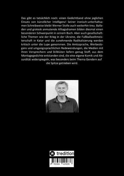 Es geht um soziale und gesellschaftliche Themen wie Digitalisierung, Umweltproblematik, das Gendern, zunehmende Gewalt in Sprache und Politik, Krieg in der Ukraine, die Fußball-WM in Katar. Einen Schwerpunkt nehmen Balladen ein, in denen Alltagsdramen geschildert werden. Versprecher und Stilblüten, über Jahre hinweg gesammelt, werden zu absurd erscheinenden Gedichten montiert. Auffällige Stilmittel: Ironie und Sarkasmus.
