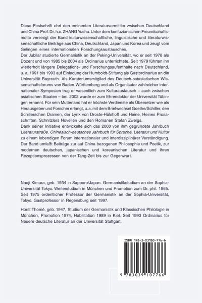 Diese Festschrift ehrt den eminenten Literaturvermittler zwischen Deutschland und China Prof. Dr. h.c. Zhang Yushu. Unter dem konfuzianischen Freundschaftsmotto vereinigt der Band kulturwissenschaftliche, linguistische und literaturwissenschaftliche Beiträge aus China, Deutschland, Japan und Korea und zeugt vom Gelingen eines internationalen Forschungsaustausches. Der Jubilar studierte Germanistik an der Peking-Universität, wo er seit 1978 als Dozent und von 1985 bis 2004 als Ordinarius unterrichtete. Seit 1979 führten ihn wiederholt längere Delegations- und Forschungsaufenthalte nach Deutschland, u. a. 1991 bis 1993 auf Einladung der Humboldt-Stiftung als Gastordinarius an die Universität Bayreuth. Als Kuratoriumsmitglied des Deutsch-ostasiatischen Wissenschaftsforums von Baden-Württemberg und als Organisator zahlreicher internationaler Symposien trug er wesentlich zum Kulturaustausch - auch zwischen asiatischen Staaten - bei. 2002 wurde er zum Ehrendoktor der Universität Tübingen ernannt. Für sein Mutterland hat er höchste Verdienste als Übersetzer wie als Herausgeber und Forscher erlangt, u. a. mit dem Briefwechsel Goethe/Schiller, den Schillerschen Dramen, der Lyrik von Droste-Hülshoff und Heine, Heines Prosaschriften, Schnitzlers Novellen und den Romanen Stefan Zweigs. Dank seiner Initiative entwickelte sich das 2000 von ihm gegründete Jahrbuch Literaturstraße. Chinesisch-deutsches Jahrbuch für Sprache, Literatur und Kultur zu einem lebendigen Forum internationaler und interdisziplinärer Verständigung. Der Band umfaßt Beiträge zur auf China bezogenen Philosophie und Poetik, zur modernen deutschen, japanischen und koreanischen Literatur und ihren Rezeptionsprozessen von der Tang-Zeit bis zur Gegenwart.