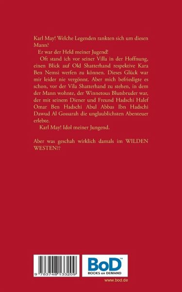 Karl May! Welche Legenden rankten sich um diesen Mann? Er war der Held meiner Jugend! Oft stand ich vor seiner Villa in der Hoffnung, einen Blick auf Old Shatterhand respektive Kara Ben Nemsi werfen zu können. Dieses Glück war mir leider nie vergönnt. Aber mich befriedigte es schon, vor der Vila Shatterhand zu stehen, in dem der Mann wohnte, der Winnetous Blutsbruder war, der mit seinem Diener und Freund Hadschi Halef Omar Ben Hadschi Abul Abbas Ibn Hadschi Dawud Al Gossarah die unglaublichsten Abenteuer erlebte. Karl May! Idol meiner Jungend.Aber was geschah wirklich damals im WILDEN WESTEN??
