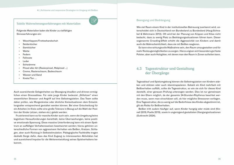 Die vollständig überarbeitete Neuausgabe in der Reihe "Bildungs- und Entwicklungsort Kita" der Expertin für Kleinkindpädagogik Dorothee Gutknecht: Kleine Kinder, die andere Kinder in der Gruppe beißen, sind für pädagogische Fachkräfte in Kitas eine große Herausforderung. Entwicklungspsychologisch betrachtet ist es nicht ungewöhnlich, dass Kinder zwischen einem und drei Jahren beißen. Doch wie kann ein Umgang mit diesen herausfordernden Situationen gelingen? Wie können Kinder unterstützt werden, ein angemessenes Verhalten aufzubauen? Wie können Eltern in angespannten Situationen gestärkt und begleitet werden? Im Buch werden vielfältige Ursachen für das Beißen aufgezeigt und achtsame und responsive Strategien im Umgang damit vorgestellt, die alle Beteiligten in den Blick nehmen: Kinder, Eltern, pädagogische Fachkräfte, Leitung und Träger. Das Buch ist ein Muss für die Arbeit mit Kindern bis drei Jahren!