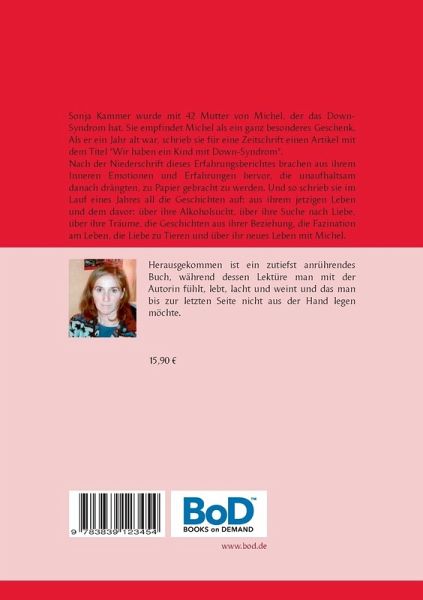 Sonja Kammer, Jahrgang 1965, wurde mit 42 Mutter von Michel, der das Down-Syndrom hat. Sie empfindet Michel als ein ganz besonderes Geschenk. Als er ein Jahr alt war schrieb sie für eine Zeitschrift einen Artikel mit dem Titel "Wir haben ein Kind mit Down-Syndrom". Nach Niederschrift dieses Erfahrungsberichts brachen aus ihrem Inneren Emotionen und Erfahrungen hervor, die unaufhaltsam danach drängten, zu Papier gebracht zu werden. Und so schrieb sie im Laufe eines Jahres all die Geschichten auf: aus ihrem jetzigen Leben und dem davor, über ihre Alkoholsucht, über ihre Suche nach Liebe bei ihren Eltern und bei Männern, über ihre Träume, die Geschichten aus ihrer Beziehung, die Faszination am Leben, die Liebe zu Tieren und über ihr neues Leben mit Michel.Herausgekommen ist ein zutiefst anrührendes Buch, während dessen Lektüre man mit der Autorin fühlt, lebt, lacht und weint und das man bis zur letzten Seite nicht aus der Hand legen möchte.
