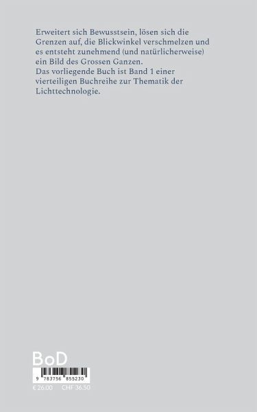 Erweitert sich Bewusstsein, lösen sich die Grenzen auf, die Blickwinkel verschmelzen und es entsteht zunehmend (und natürlicherweise) ein Bild des Grossen Ganzen.Das vorliegende Buch ist Band 1 einer vierteiligen Buchreihe zur Thematik der Lichttechnologie.
