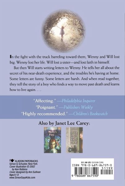 Will North and his little sister Wenny both die when they are hit by a truck, but he is pulled back into life. Will blames himself for Wenny's death--and he is furious with Wenny for leaving him behind. Will's pastor tells him that when he's angry, he writes letters to God, but Will decides he'd rather write letters to Wenny. So he does, in a touching, funny, and honest correspondence.