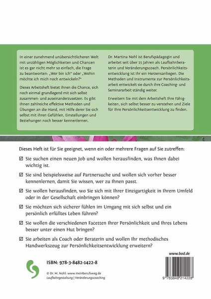 Dieses Arbeitsheft bietet Ihnen die Chance, sich noch einmal grundlegend mit sich selbst zusammen- und auseinanderzusetzen. Es gibt Ihnen zahlreiche effektive Methoden und Übungen an die Hand, mit Hilfe derer Sie sich selbst mit ihren Gefühlen, Einstellungen und Beziehungen noch besser kennenlernen.