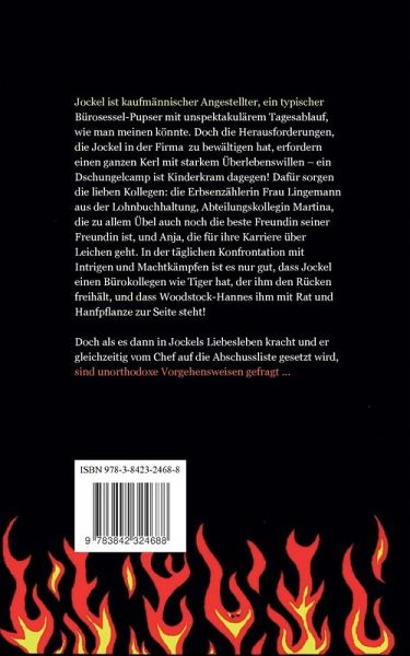 Jockel ist kaufmännischer Angestellter, ein typischer Bürosessel-Pupser mit unspektakulärem Tagesablauf, wie man meinen könnte. Doch die Herausforderungen, die Jockel in der Firma zu bewältigen hat, erfordern einen ganzen Kerl mit starkem Überlebenswillen - ein Dschungelcamp ist Kinderkram dagegen! Dafür sorgen die lieben Kollegen: die Erbsenzählerin Frau Lingemann aus der Lohnbuchhaltung, Abteilungskollegin Martina, die zu allem Übel auch noch die beste Freundin seiner Freundin ist, und Anja, die für ihre Karriere über Leichen geht. In der täglichen Konfrontation mit Intrigen und Machtkämpfen ist es nur gut, dass Jockel einen Bürokollegen wie Tiger hat, der ihm den Rücken freihält, und dass Woodstock-Hannes ihm mit Rat und Hanfpflanze zur Seite steht!Doch als es dann in Jockels Liebesleben kracht und er gleichzeitig vom Chef auf die Abschussliste gesetzt wird, sind unorthodoxe Vorgehensweisen gefragt ...