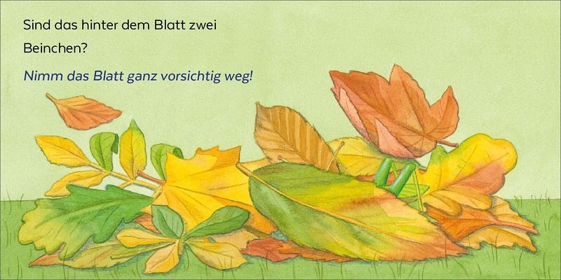 ein Schmetterling in die Höhe. Auf dem Kompost liegt eine Feder, die wegzupusten gilt, dann taucht ein…mehrHinter den drei weißen Bluem auf dem Cover verstecken sich Tiere, ein wenig ist schon von ihnen zusehen. Und auf der ersten Doppelseite des Pappbilderbuches sehen wir etwas durch die Gardine scheinen. Dann werden wir aufgefordert die Gardine zur Seite zu schieben und auf der nächsten Seite fliegt ein Schmetterling in die Höhe. Auf dem Kompost liegt eine Feder, die wegzupusten gilt, dann taucht ein Regenwurm auf. Auch unter den Apfelstücken auf dem Teller sieht man graue Flügel, sie gehören zu einer Stubenfliege. Wenn an die Kirschen vom Baum pflückt taucht eine Schnecke auf, die über den Ast kriecht. Und so geht es fröhlich weiter.