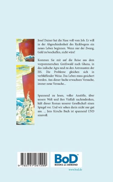 Josef Dainer hat die Nase voll vom Job. Er will in der Abgeschiedenheit des Ryckbogens ein neues Leben beginnen. Wenn nur der Zwang, Geld zu beschaffen, nicht wäre!Kommen Sie mit auf die Reise aus dem vorpommerschen Greifswald nach Ghana, in das indische Agra und zu den Astronauten der ISS. Die Probleme gleichen sich in verblüffender Weise. Das Leben muss gesichert werden. Aus dieser Suche erwachsen Versuche, immer neue Versuche...
