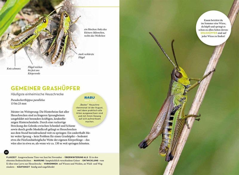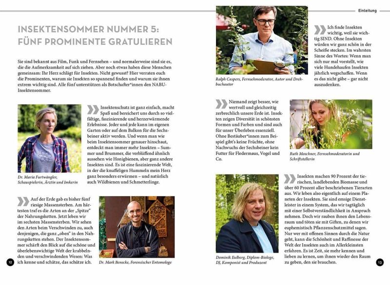 Die Mitmach-Aktion "Insektensommer" von NABU und LBV wird jedes Jahr populärer und immer mehr Menschen beteiligen sich an der Zählung von Bienen, Schmetterlingen, Käfern und anderen 6-Beinern. Für sie und alle anderen am Insekten- und Artenschutz Interessierte bietet dieses handliche Bestimmungsbuch einen bunten Streifzug durch die Vielfalt unserer Insekten. 76 Arten werden mit Fotos in Lebensgröße ausführlich porträtiert und viele weitere auf Übersichtsseiten vorgestellt. Ergänzt wird der Bestimmungsteil durch unterhaltsame Fun-Facts sowie Tipps und DIY-Ideen zum Insektenschutz.