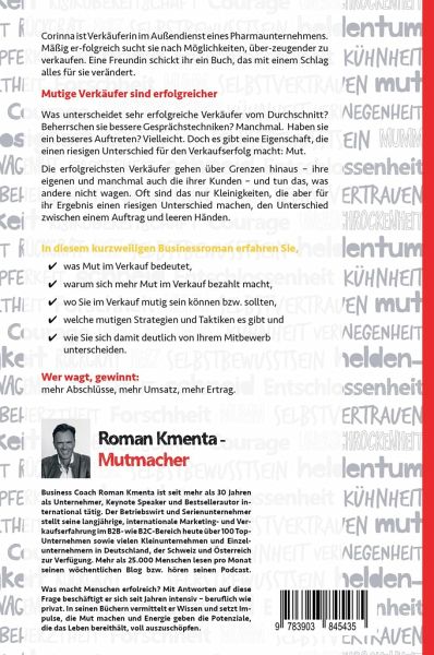 Corinna ist Verkäuferin im Außendienst eines Pharmaunternehmens. Mäßig erfolgreich sucht sie nach Möglichkeiten, überzeugender zu verkaufen. Eine Freundin schickt ihr ein Buch, das mit einem Schlag alles für sie verändert.Mutige Verkäufer sind erfolgreicherWas unterscheidet sehr erfolgreiche Verkäufer vom Durchschnitt? Beherrschen sie bessere Gesprächstechniken? Manchmal. Haben sie ein besseres Auftreten? Vielleicht. Doch es gibt eine Eigenschaft, die einen riesigen Unterschied für den Verkaufserfolg macht: Mut.Die erfolgreichsten Verkäufer gehen über Grenzen hinaus - ihre eigenen und manchmal auch die ihrer Kunden - und tun das, was andere nicht wagen. Oft sind das nur Kleinigkeiten, die aber für ihr Ergebnis einen riesigen Unterschied machen, den Unterschied zwischen einem Auftrag und leeren Händen.In diesem kurzweiligen Businessroman erfahren Sie, was Mut im Verkauf bedeutet, warum sich mehr Mut im Verkauf bezahlt macht, wo Sie im Verkauf mutig sein können bzw. sollten, welchemutigen Strategien und Taktiken es gibt und wie Sie sich damit deutlich von Ihrem Mitbewerb unterscheiden.Wer wagt, gewinnt: mehr Abschlüsse, mehr Umsatz, mehr Ertrag.