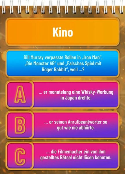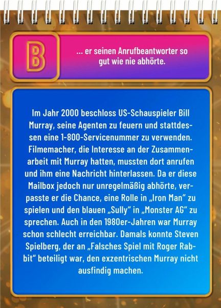 80 abwechslungsreiche Fragen aus spannenden vielseitigen KategorienUnterhaltsame Fakten und Allgemeinwissen liefern amüsante Anekdoten für Smalltalk