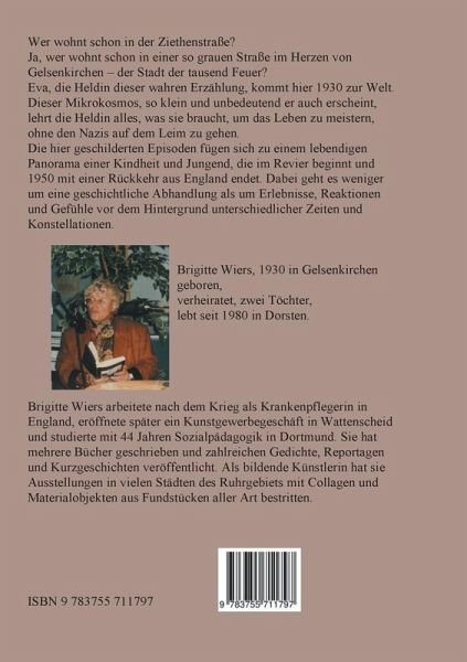 Wer wohnt schon in der Ziethenstraße?Ja, wer wer wohnt schon in einer so grauen Straße im Herzen von Gelsenkirchen - der Stadt der tausend Feuer?Eva, die Heldin dieser wahren Erzählung, kommt hier 1930 zur Welt. Dieser Mikrokosmus, so klein und unbedeutend er auch erscheint, lehrt die Heldin alles, was sie braucht, um das Leben zu meistern, ohne den Nazis auf den Leim zu gehen.Die hier geschilderten Episoden fügen sich zu einem lebendigen Panorama einer Kindheit und Jugend, die im Revier beginnt und 1950 mit der Rückkehr aus England endet. dabei geht es weniger um eine geschichtliche Abhandlung als und Erlebnisse, Reaktionen und Gefühle vor dem Hintergrund unterschiedlicher Zeiten und Konstellationen.
