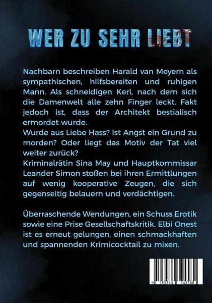 van Meyern als sympathischen, hilfsbereiten und ruhigen Mann, nach dem sich die Damenwelt alle zehn…mehrHarald von Meyern ist ein gutaussehender Architekt und wird bestialisch ermordet. Man findet ihn tot in seiner Wohnung. Kriminalrätin Sina May und Hauptkommissar Leander Simon glauben nicht richtig zu sehen, als sie entdecken, dass man das Opfer auch noch angezündet hat. Nachbarn beschreiben Harald van Meyern als sympathischen, hilfsbereiten und ruhigen Mann, nach dem sich die Damenwelt alle zehn Finger leckt. Als Tatverdächtige kommen zunächst drei Frauen in Frage. Zum einen ist da Lilian, die Tochter von Harry, dann ihre beste Freundin Sarah, die Harrys Geliebte ist, jedoch keinem etwas davon erzählt. Und dann ist da noch Sarahs Mutter Birgit, die ebenfalls mal eine Affäre mit Harry hatte. Hatte eine von den drei Frauen einen Grund, Harry zu töten? Kann aus Liebe Hass werden? Oder steckt doch etwas anderes, bzw. jemand ganz anderes dahinter, der Harry lieber tot als lebendig sehen wollte…..?
