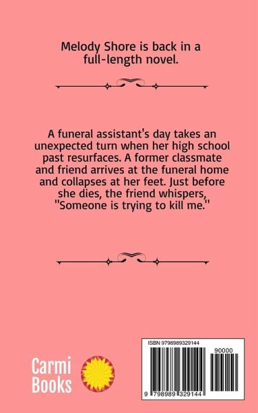 Melody Shore is back in a full-length novel. They say old friendships die hard, but what happens when the old friend literally dies in front of you? A funeral assistant's day takes an unexpected turn when her high school past resurfaces. A former classmate and friend arrives at the funeral home and collapses at her feet. Just before she dies, she whispers, "Someone is trying to kill me."