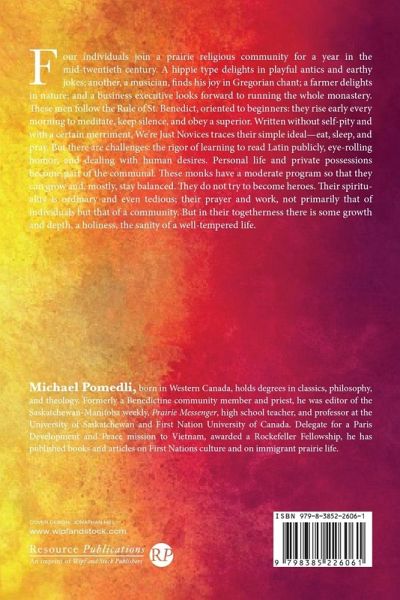 Four individuals join a prairie religious community for a year in the mid-twentieth century. A hippie type delights in playful antics and earthy jokes; another, a musician, finds his joy in Gregorian chant; a farmer delights in nature; and a business executive looks forward to running the whole monastery. These men follow the Rule of St. Benedict, oriented to beginners: they rise early every morning to meditate, keep silence, and obey a superior. Written without self-pity and with a certain merriment, We're Just Novices traces their simple ideal--eat, sleep, and pray. But there are challenges: the rigor of learning to read Latin publicly, eye-rolling humor, and dealing with human desires. Personal life and private possessions become part of the communal. These monks have a moderate program so that they can grow and, mostly, stay balanced. They do not try to become heroes. Their spirituality is ordinary and even tedious; their prayer and work, not primarily that of individuals but that of a community. But in their togetherness there is some growth and depth, a holiness, the sanity of a well-tempered life.