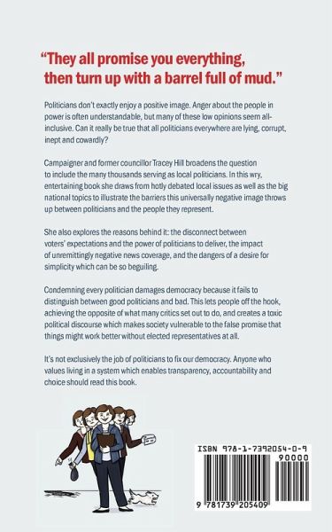 "They all promise you everything, then turn up with a barrel full of mud." Politicians don't exactly enjoy a positive image. Anger about the people in power is often understandable, but many of these low opinions seem all-inclusive. Can it really be true that all politicians everywhere are lying, corrupt, inept and cowardly? Campaigner and former councillor Tracey Hill broadens the question to include the many thousands serving as local politicians. In this wry, entertaining book she draws from hotly debated local issues as well as the big national topics to illustrate the barriers this universally negative image throws up between politicians and the people they represent. She also explores the reasons behind it: the disconnect between voters' expectations and the power of politicians to deliver, the impact of unremittingly negative news coverage, and the dangers of a desire for simplicity which can be so beguiling. Condemning every politician damages democracy because it fails to distinguish between good politicians and bad. This lets people off the hook, achieving the opposite of what many critics set out to do, and creates a toxic political discourse which makes society vulnerable to the false promise that things might work better without elected representatives at all. "A great dissection of the contradictions, frustrations and obstacles of politics. Key observations include the lack of space for nuance and context in political communication, the importance of ambitious, stretch targets, and the conflict between local and citywide responsibilities. I've always said there are a dozen different and conflicting views in every street I've doorknocked. This is the kind of book that should be required reading in PSHCE lessons, or indeed for anyone wanting to write a letter of complaint to the local paper!" Warren Morgan, Leader of Brighton and Hove City Council 2015-2018