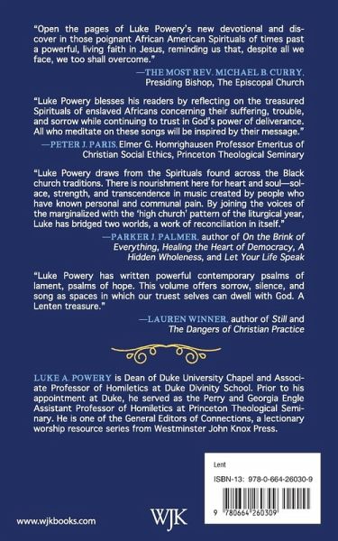 Valuable not only for their sublime musical expression, the African American spirituals provide profound insights into the human condition and Christian life. Many spirituals focus on the climax of the Christian drama, the death and resurrection of Jesus Christ, and the ways in which those events bring about the liberation of God’s people. In these devotions for the season of Lent, Luke A. Powery leads the reader through the spirituals as they confront the mystery of Christ’s atoning death and victory over the grave. Each selection includes the lyrics of the spiritual, a reflection by the author on the spiritual’s meaning, a Scripture verse related to that meaning, and a brief prayer.