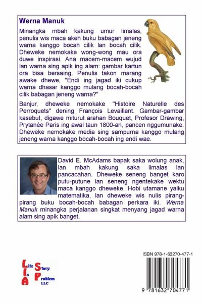 Minangka mbah kakung umur limalas, penulis wis maca akeh buku babagan jeneng warna kanggo bocah cilik lan bocah cilik. Dheweke nemokake wong-wong mau ora duwe inspirasi. Ana macem-macem wujud lan warna sing apik ing alam: gambar kartun ora bisa bersaing. Penulis takon marang awake dhewe, "Endi ing jagad iki cukup warna dhasar kanggo mulang bocah-bocah cilik babagan jeneng warna?"Banjur, dheweke nemokake "Histoire Naturelle des Perroquets" dening François Levaillant. Gambar-gambar kasebut, digawe miturut arahan Bouquet, Profesor Drawing, Prytanée Paris ing awal taun 1800-an, pancen nggumunake.…mehr