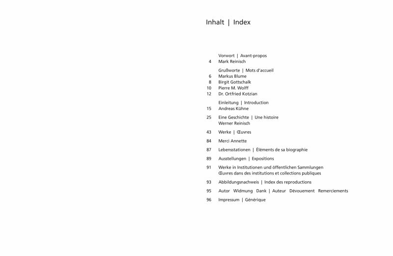 Le catalogue, publié par l'Institut Werner Reinisch avec la Société Montgelas pour la promotion de la coopération franco-bavaroise, présente des dessins et des peintures à l'huile de ces dernières années qui révèlent la diversité de l'artiste. On y trouve également, outre de nouveaux aphorismes, un texte autobiographique de Reinisch.