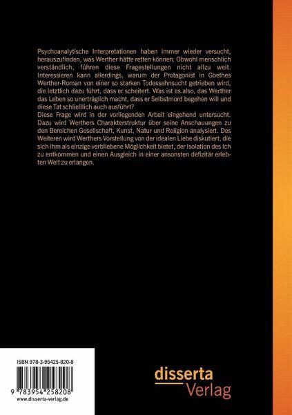 Diese Frage wird in der vorliegenden Arbeit eingehend untersucht. Dazu wird Werthers Charakterstruktur über seine Anschauungen zu den Bereichen Gesellschaft, Kunst, Natur und Religion analysiert. Des Weiteren wird Werthers Vorstellung von der idealen Liebe diskutiert, die sich ihm als einzige verbliebene Möglichkeit bietet, der Isolation des Ich zu entkommen und einen Ausgleich in einer ansonsten defizitär erlebten Welt zu erlangen.