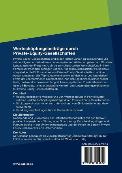 Private-Equity-Gesellschaften gehören heute zu den sehr erfolgreichen, aber auch kritisierten Teilnehmern der europäischen Wirtschaft. Christian Landau geht der Frage nach, ob sie zur substanziellen Wertschöpfung in ihren Portfoliounternehmen beitragen können. Aus ressourcenbasierter Perspektive analysiert er die Einflussnahme von Private-Equity-Gesellschaften und ihre Auswirkungen auf das Topmanagement sowie auf den kurz- und langfristigen Erfolg der übernommenen Unternehmen. Aus den Ergebnissen seines Modelltests, basierend auf einem umfangreichen europäischen Primärdatensatz zu Spin-off-Buyouts, leitet er geeignete Kontroll- und Unterstützungsmaßnahmen für Private-Equity-Gesellschaften ab.