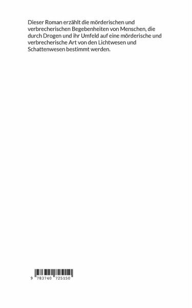 Dieser Roman erzählt die mörderischen und verbrecherischen Begebenheiten von Menschen, die durch Drogen und ihr Umfeld auf eine mörderische und verbrecherische Art von den Lichtwesen und Schattenwesen bestimmt werden.