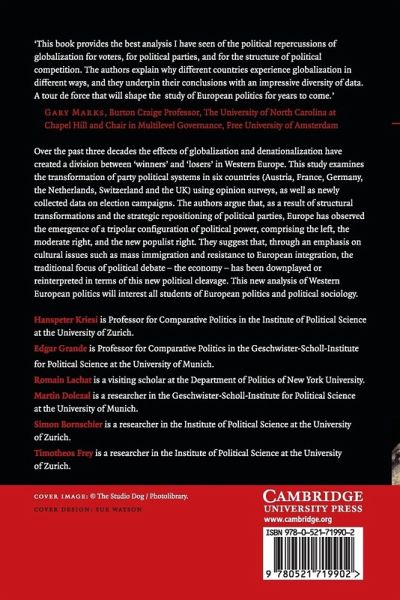 Over the past three decades the effects of globalization and denationalization have created a division between 'winners' and 'losers' in Western Europe. This study examines the transformation of party political systems in six countries (Austria, France, Germany, the Netherlands, Switzerland and the UK) using opinion surveys, as well as newly collected data on election campaigns. The authors argue that, as a result of structural transformations and the strategic repositioning of political parties, Europe has observed the emergence of a tripolar configuration of political power, comprising the left, the moderate right, and the new populist right. They suggest that, through an emphasis on cultural issues such as mass immigration and resistance to European integration, the traditional focus of political debate - the economy - has been downplayed or reinterpreted in terms of this new political cleavage. This new analysis of Western European politics will interest all students of European politics and political sociology. Over the past three decades globalisation and denationalisation have created a division between 'winners' and 'losers' in Western Europe. This study examines the resulting transformation of the party systems in six countries and demonstrates how globalisation's losers are becoming increasingly motivated and mobilised by parties of the new populist right.