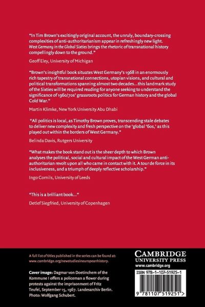 The anti-authoritarian revolt of the 1960s and 1970s was a watershed in the history of the Federal Republic of Germany. The rebellion of the so-called '68ers' - against cultural conformity and the ideological imperatives of the Cold War, against the American war in Vietnam, and in favor of a more open accounting for the crimes of the Nazi era - helped to inspire a dialogue on democratization with profound effects on German society. Timothy Scott Brown examines the unique synthesis of globalizing influences on West Germany to reveal how the presence of Third World students, imported pop culture from America and England, and the influence of new political doctrines worldwide all helped to precipitate the revolt. The book explains how the events in West Germany grew out of a new interplay of radical politics and popular culture, even as they drew on principles of direct-democracy, self-organization and self-determination, all still highly relevant in the present day.