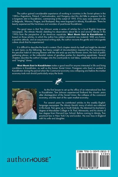 The author gained considerable experience of working in countries in the Soviet sphere in the 1980s-Yugoslavia, Poland, Czechoslovakia, and Hungary-but this did little to prepare him for a long-term stint in Kazakhstan, commencing at the outset of 1993. If his eyes were opened wide in Belgrade, Warsaw, Prague, and Budapest, they were bug-eyed in Almaty, Kazakhstan. There he keenly experienced the harshness and wonders of post-Soviet Kazakhstan. The good news is that Tom Johnson wrote a series of articles for a local English language newspaper, The Almaty Herald, detailing his observations about life in and around Almaty in the 1990s from the perspective of an American expatriate. West Meets East in Kazakhstan is based on those articles, to which the author has added substantial new material. With wry humor, a positive attitude, and an easy-to-read writing style, the author recounts the gentle and not-so-gentle culture shock that he experienced. It is difficult to describe the book's content. Each chapter stands by itself and might be devoted to such topics as the following: the heavy weight of documentation required by the bureaucracy, the peculiar habit of carrying flowers with the wet ends up and the flowers down, the lack of public gathering places, or the outlandish nature of goodbye parties for departing expatriates. Several chapters describe the author's forages into the countryside to visit lakes, waterfalls, burial mounds, and "singing" dunes. West Meets East in Kazakhstan makes a good read for anyone interested in life and living conditions in Kazakhstan, as well as the former Soviet Union. Foreigners who lived or worked in Kazakhstan during the period when the Communist economy was collapsing and before the market economy took root should particularly enjoy the book.