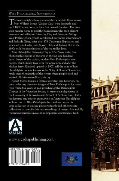 The many neighborhoods west of the Schuylkill River across from William Penn's "Quaker City" were distinctly rural until 1860, when horsecar lines first crossed the river. The area soon became home to wealthy businessmen who built elegant mansions and villas in University City and Powelton Village. West Philadelphia's growth accelerated northward into Belmont and Parkside-Girard after the 1876 Centennial Exposition and westward into Cedar Park, Spruce Hill, and Walnut Hill in the 1890s with the introduction of electric trolley lines. West Philadelphia: University City to 52nd Street is the first photographic history of the area in the last one hundred years. Images of the typical, modest West Philadelphia row houses, which slowly took over the open farmland after the Market Street Elevated opened in 1907, tell the story of how Philadelphia became known as the "City of Homes." Countless, rarely seen photographs of the streets where people lived and worked fill this extraordinary history.