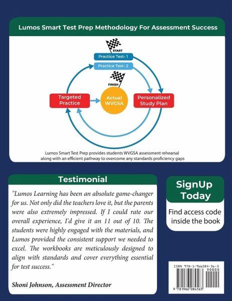 Improve 2024-25 WVGSA Test Scores Practice workbooks to confidently prepare and excel in the 2025 West Virginia Grade 5 English Language Arts Assessments! This 5th Grade WVGSA ELA Workbook is designed by expert teachers to boost your child's test scores by 10-15 points. Featuring hundreds of practice questions fully aligned with West Virginia Grade 5 ELA learning standards, realistic online practice tests, and personalized learning paths, this workbook is tailored to your child's test prep needs! Unmatched Features: Instant Auto-Grading for Faster Learning Lumos Learning is the only test prep resource that offers Instant auto-grading with virtual bubble sheets where your child receives immediate feedback, helping them identify areas for improvement and boosting their learning efficiency. Our comprehensive practice tests and workbooks are closely aligned with West Virginia state standards providing targeted preparation to help your child achieve higher scores on the 2025 West Virginia test. What's on the 2024-25 WVGSA Grade 5 ELA Workbook? Introducing Lumos AI Tutor: While completing practice tasks, your child receives personalized, guided support with step-by-step explanations, helpful hints, and tailored feedback-just like having a teacher at home! Try it today with your workbook. Comprehensive WVGSA Prep with 5th Grade ELA Practice Questions Expert-Designed WVGSA Practice: Hundreds of carefully crafted questions aligned with the WVGSA test, available in both print and digital formats, covering every essential ELA concept. Comprehensive Coverage: The workbook addresses 40+ ELA skills, including Reading Literature, Reading Informational Text and Language. Realistic Practice Tests: Prepare your child with two full-length practice tests that mirror the exact format and difficulty level of the WVGSA exam, helping them feel confident and ready for test day. Personalized Study Plan: Based on your child's performance in the online practice tests, receive a personalized study plan to guide them through targeted remedial practice using the physical workbook. Lumos AI Tutor: Acting as a personal coach, the AI Tutor provides step-by-step guidance, hints, and real-time feedback to keep your child on track and engaged during practice. Progress Tracking: Compare your child's progress with their peers using easy-to-read performance reports, allowing you to address any learning gaps early.
