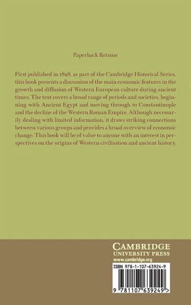 First published in 1898, as part of the Cambridge Historical Series, this book presents a discussion of the main economic features in the growth and diffusion of Western European culture during ancient times. The text covers a broad range of periods and societies, beginning with Ancient Egypt and moving through to Constantinople and the decline of the Western Roman Empire. Although necessarily dealing with limited information, it draws striking connections between various groups and provides a broad overview of economic change. This book will be of value to anyone with an interest in perspectives on the origins of Western civilization and ancient history.