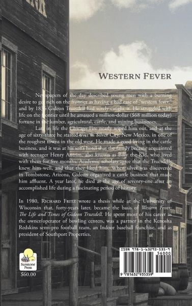 Newspapers of the day described young men with a burning desire to get rich on the frontier as having a bad case of "western fever," and by 1836 Gideon Truesdell had surely caught it. He struggled with life on the frontier until he amassed a million-dollar ($68 million today) fortune in the lumber, agricultural, cattle, and mining businesses. Late in life the Chicago Fire nearly wiped him out, and at the age of sixty-three he started over in Silver City, New Mexico, in one of the roughest towns in the old west. He made a good living in the cattle business, and it was at his son's hotel that the family became acquainted with teenager Henry Antrim, also known as Billy the Kid, who lived with them for five months. Academic scholars agree that the Truesdells knew him well, and that they liked him. When silver was discovered in Tombstone, Arizona, Gideon organized a cattle business that made him affluent. A year later, he died at the age of seventy-one after an accomplished life during a fascinating period of history.