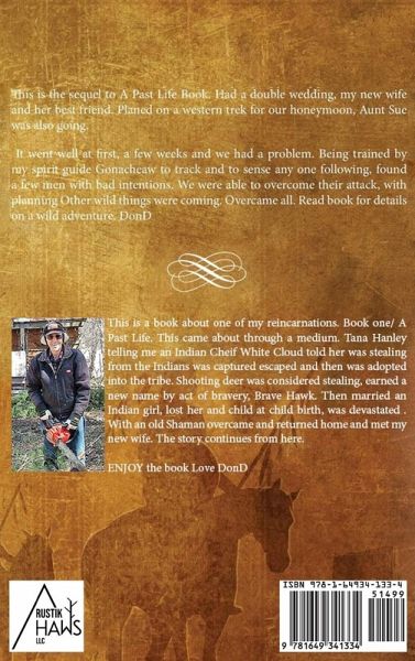 This is the sequel to A Past Life Book. Had a double wedding, my new wife and her best friend. Planed on a western trek for our honeymoon, Aunt Sue was also going. It went well at first, a few weeks and we had a problem. Being trained by my spirit guide Gonacheaw to track and to sense any one following, found a few men with bad intentions. We were able to overcome their attack, with planning other wild things were coming. Overcame all, Read book for details on a wild adventure. DonD