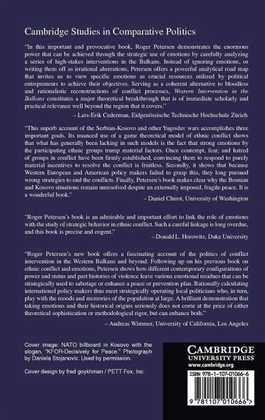 "In this important and provocative book, Roger Petersen demonstrates the enormous power that can be achieved through the strategic use of emotions, by carefully analyzing a series of high-stakes interventions in the Balkans. Instead of ignoring emotions, or writing them off as irrational aberrations, Petersen offers a powerful analytical road map that invites us to view specific emotions as crucial resources utilized by political entrepreneurs to achieve their objectives. Serving as a coherent alternative to bloodless and rationalistic reconstructions of conflict processes, Western Intervention in the Balkans constitutes a major theoretical breakthrough that is of immediate scholarly and practical relevance well beyond the region that it covers." - Lars-Erik Cederman, Eidgenössische Technische Hochschule Zürich