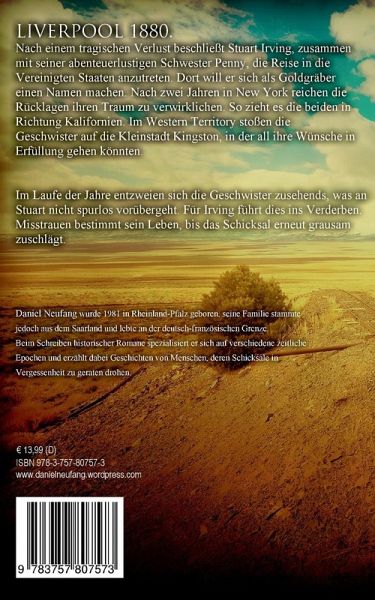 Liverpool 1880.Nach einem tragischen Verlust beschließt Stuart Irving, zusammen mit seiner abenteuerlustigen Schwester Penny, die Reise in die Vereinigten Staaten anzutreten. Dort will er sich als Goldgräber einen Namen machen. Nach zwei Jahren in New York reichen die Rücklagen ihren Traum zu verwirklichen. So zieht es die beiden in Richtung Kalifornien. Im Western Territory stoßen die Geschwister auf die Kleinstadt Kingston, in der all ihre Wünsche in Erfüllung gehen könnten.Im Laufe der Jahre entzweien sich die Geschwister zusehends, was an Stuart nicht spurlos vorübergeht. Für Irving führt dies ins Verderben. Misstrauen bestimmt sein Leben, bis das Schicksal erneut grausam zuschlägt.